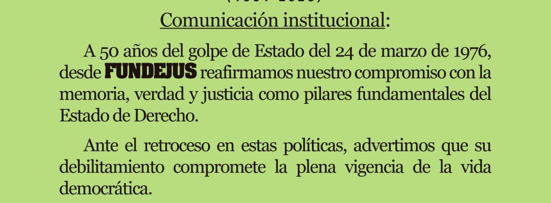 FUNDEJUS está constituida por personas de distintos sectores, reunidas por la común preocupación de contribuir al mejoramiento, racionalización y modernización