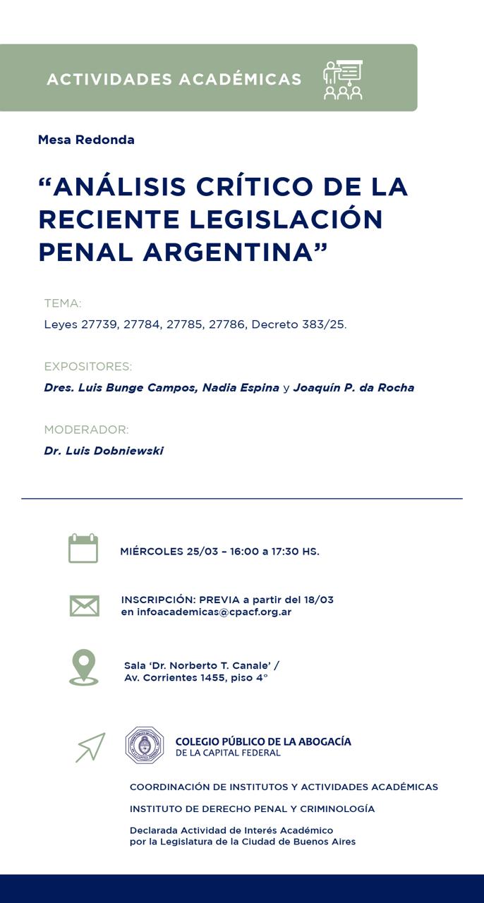 “Análisis crítico de la reciente legislación penal Argentina”