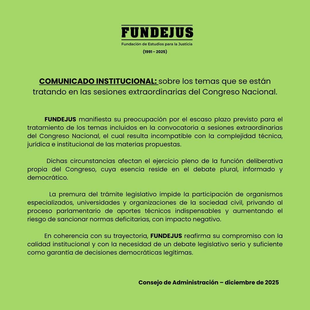 16/12/2025 11:26 Comunicado Institucional: sobre los temas que se están tratando en las sesiones extraordinarias del Congreso Nacional.