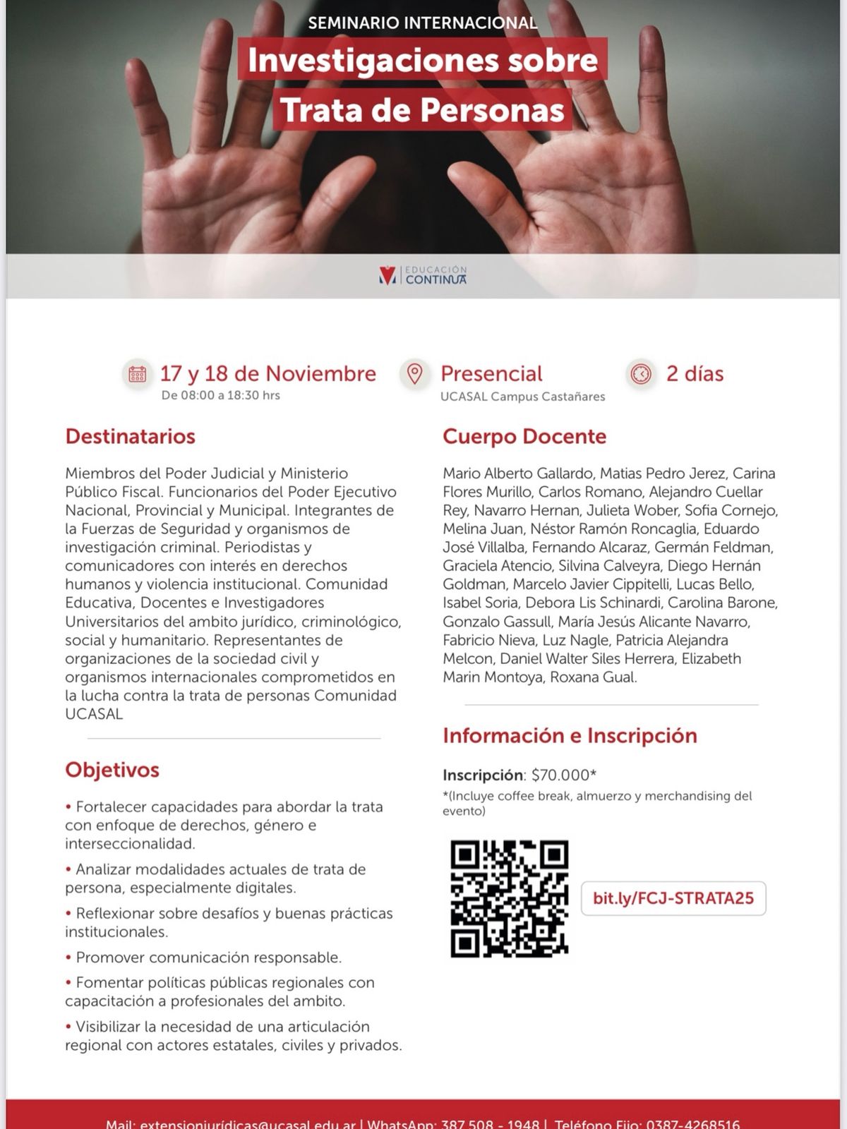 Investigaciones sobre Trata de Personas Previous Invitación del Colegio Publico de la Abogacía de la Capital Federal Categoria Novedades Resultados de: SOCIALIZAR Facebook Twitter Instagram YouTube Linea de Tiempo 23/10/2025 17:27 Investigaciones sobre Trata de Personas 16/10/2025 14:29 Invitación del Colegio Publico de la Abogacía de la Capital Federal 15/10/2025 15:50 VIII Simposio Internacional UNLaM de Teoría y Filosofía Política Democracias y nacionalismos 15/10/2025 11:54 Jornada de actualización: “La reforma del proceso de alimentos en la provincia de Buenos Aires: Ley N° 15.513” 15/10/2025 11:50 IX Jornadas Académicas Calz: “A 10 años de la Reforma del Código Civil y comercial de la Nación” 08/10/2025 15:32 La IA: su implementación en el ejercicio profesional y el servicio de justicia 08/10/2025 15:30 “Análisis critico de la reciente legislación penal Argentina” 08/09/2025 15:52 Charla Debate: “El ministerio Publico Fiscal y el nuevo código procesal penal federal” 04/09/2025 13:19 JORNADA: Libertad de expresión y democracia. 03/09/2025 12:31 Congreso: “Abordaje de los riesgos en entornos digitales para niñas, niños y adolescentes” Ultimos Afiches Jornada sobre “Justicia penal en la era digital: Inteligencia Artificial, validación de pruebas y desafíos éticos” Juzgado Federal N° 6 CABA: Análisis sobre la procedencia o no de la apertura del Procedimiento en Ausencia Jornadas sobre Sistema Acusatorio Penal Populares Videos de las “Jornadas Nacionales de Justicia – XXX Aniversario de FUNDEJUS” ¿Qué es Fundejus? Autoridades
